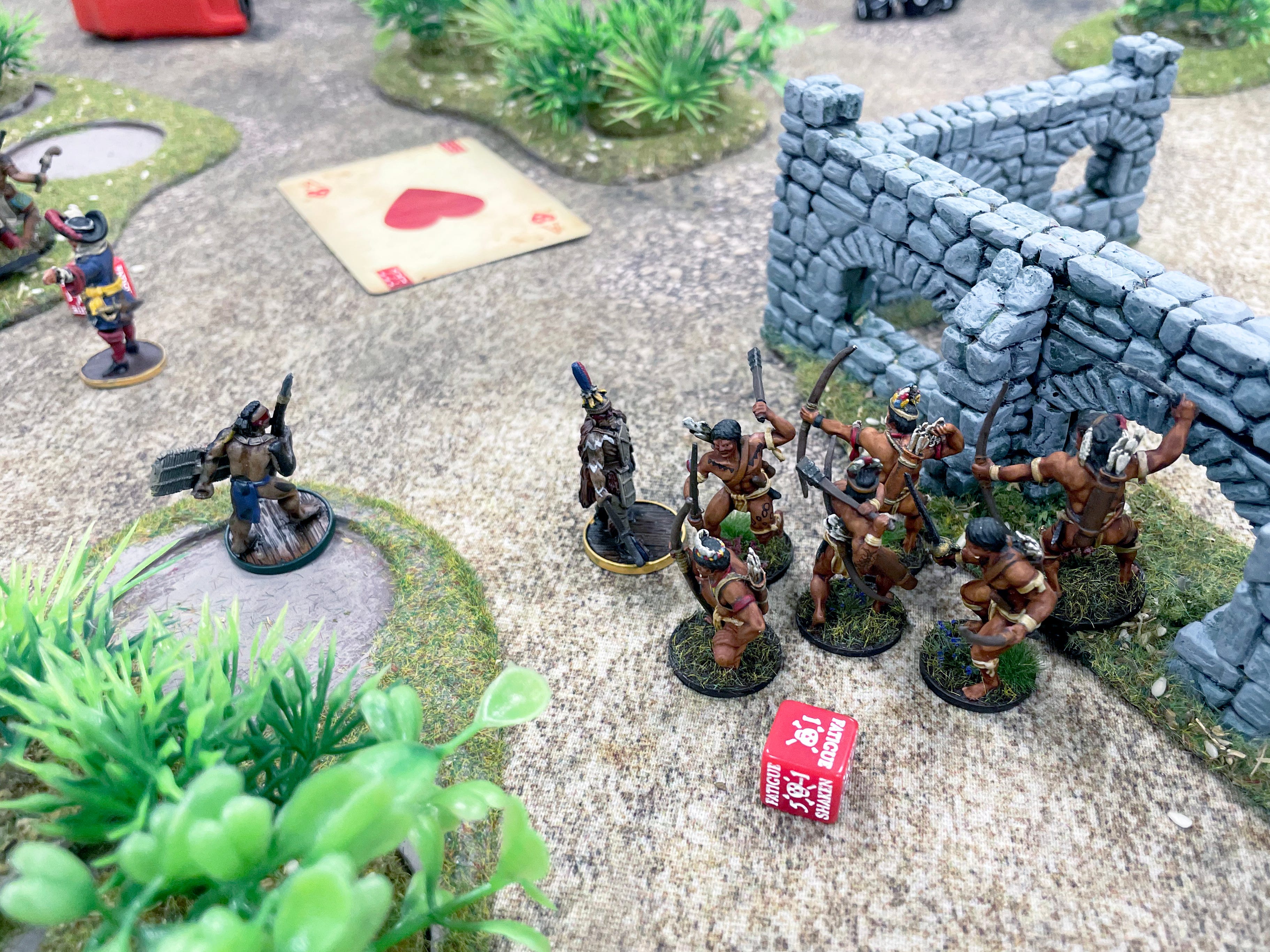 I started by reducing the numbers of the closest enemy group by a range fire from Warriors and Braves. While being lucky not to get casualties on my side. I helped Mark with figuring out how the command points work in the game and he used the rules to his advantage ever since.