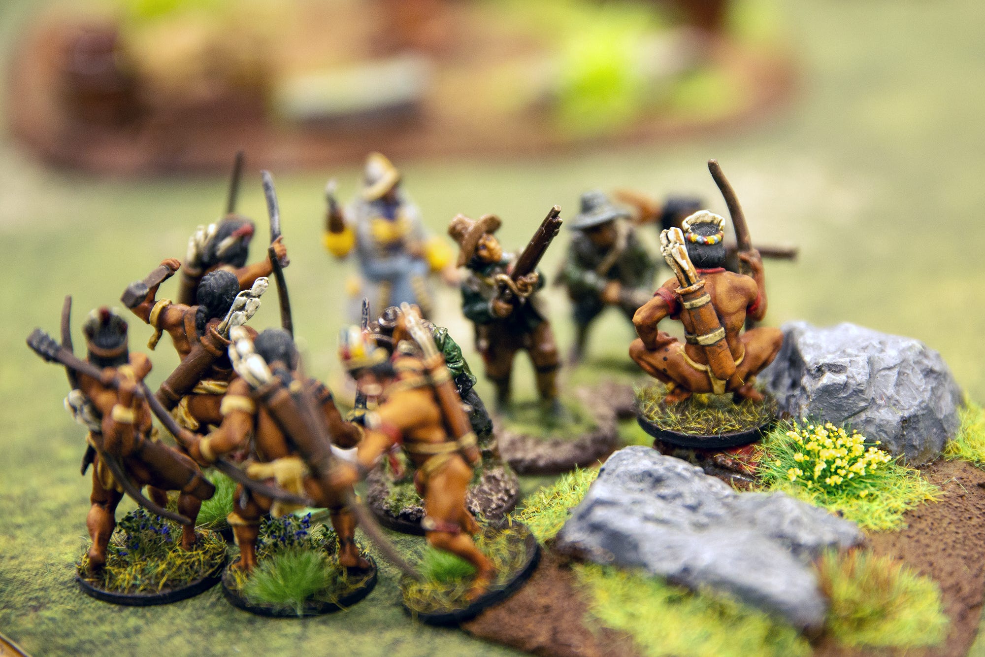 Mohawk vs. Mohawk! You couldn’t make it up. Our lists were totally different though. Phillipo ran two units of Braves one unit of Warriors (no bows) and a 3 men's unit of Young Braves, he also played a character, who allowed a unit to rally as a free action.